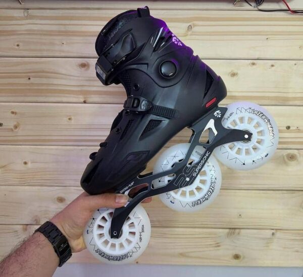 این اسکیت مناسب برای ورزشکاران مبتدی تا نیمه حرفهای است و وجود سوراخهای متعدد روی بدنه اسکیت برای جریان داشتن هوای بهتر و تنفس پا است. تیغه این اسکیت قابلیت راکر بودن و تغییر دلخواه چرخهای ابتدا و انتهایی فریم به اندازه 4 میلیمتر را دارد و جنس تیغه یا فریم از آلیاژ الومینیوم موسوم به CNC کربن تهیه شده است. سیستم فریم یا تیغه این اسکیت قابلیت جداسازی دارد و به راحتی میتوانید آن را جدا کنید و یک تیغه جدید روی اسکیت سوار کنید. چرخهای این اسکیت در سایزهای کوچکتر از سایز 40، 76 میلیمتر است و در سایزهای بزرگتر از 40، چرخهای با قطر 80 میلیمتر استفاده شده است. جنس بلبرینگ استفاده شده در این نوع از نوع ABEC 7 میباشد و از فلز کروم ساخته شده است که یک انتخاب عالی برای الیاژ مورد استفاده در این اسکیت است و مقاومت بالایی دارد.