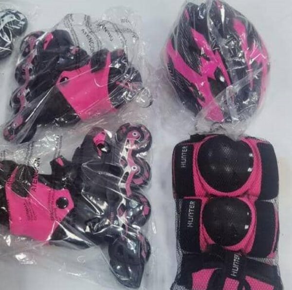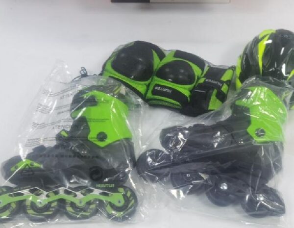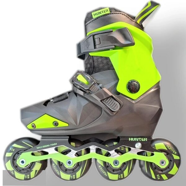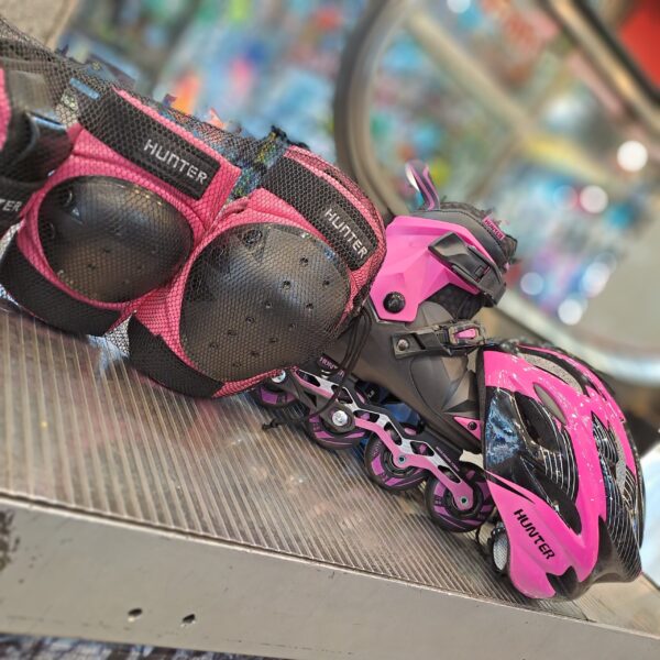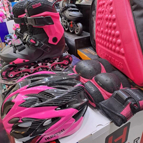 - کفش اسکیت بچگانه متغیر هانتر Hunter | یکی دیگر از برند های کفش اسکیت بعد از برند های معروف اسکیت هانتر ، متغییربوده به دلیل اینکه این مدل قابلیت تغییر سایز پا را دارد و به شما کمک میکند که در سال های بعد از خرید اسکیت از آن به راحتی استفاده کنید و وزن این مدل اسکیت بسیار مناسب بوده و به شما کمک میکند که در هنگام تمرین یا حرکت ای ورزشی دچار خستگی نشوید.بست های چف پا در این مدل کفش اسکیت به صورت تسمه ای بوده که با آج های که روی تسمه کفش دارد کاملا پا ها را چفت کفش میکند که از پیچ خوردگی ودر رفتگی پاها جلوگیری میکند تراک ها و چرخ ها این مدل از جنس پلاستیک فشرده بسیار مقاوم ومحکم بوده در این مدل از abec5 استفاده شده تا سرعت بهتری در هنگام اسکیت سواری داشته باشید،این برند یکی از برندهای معروف چینی هست که در رنگ های مختلف و به همراه ست ایمنی که شامل زانوبند،آرنج بند،کف یند و کلاه میباشد که ست های ایمنی دقیقا متناسب با سایز کفش اسکیت بوده که در یک پکیج کامل توزیع میشود