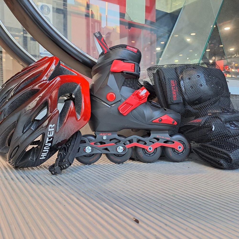 کفش اسکیت بچگانه متغیر هانتر Hunter + لوازم مشکی قرمز