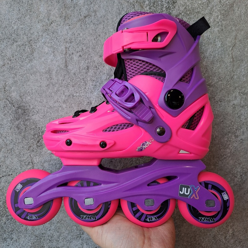 اسکیت دخترانه پسرانه بچگانه هارد آموزشی اورجینال JUX در 2 رنگ جدید روانه بازار شده است تا بتواند در کنار کفش اسکیت هانتر آماده رقابت با سایر برندهای کفش اسکیت بازار باشد. کفش اسکیت جی یو ایکس با رویه هارد، دو عدد تسمه در قسمت پنجه و مچ پا، طراحی به روز و بلبرینگ abec5 طراحی شده است تا سرعت مناسبی را هنگام اسکیت سواری فراهم آورد.