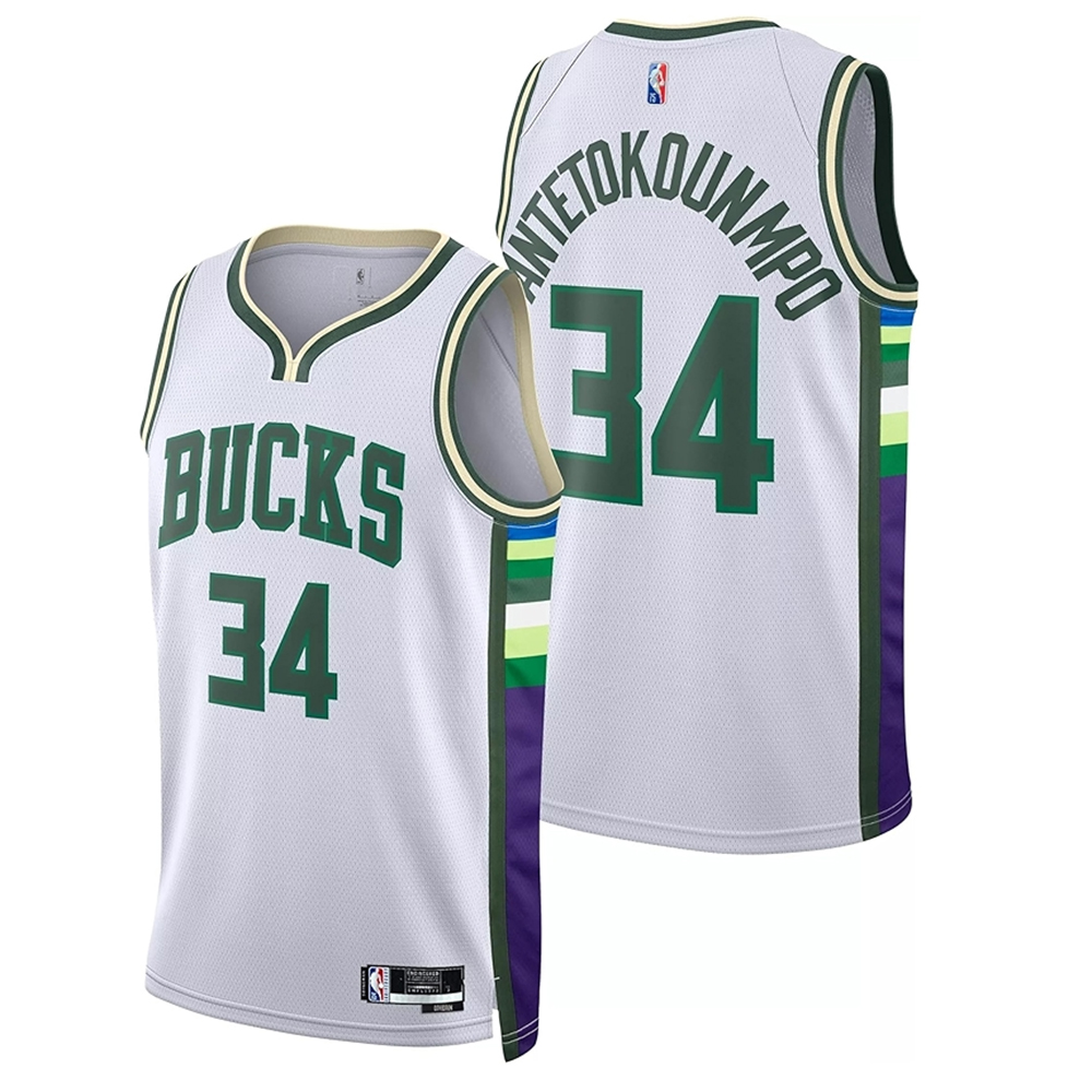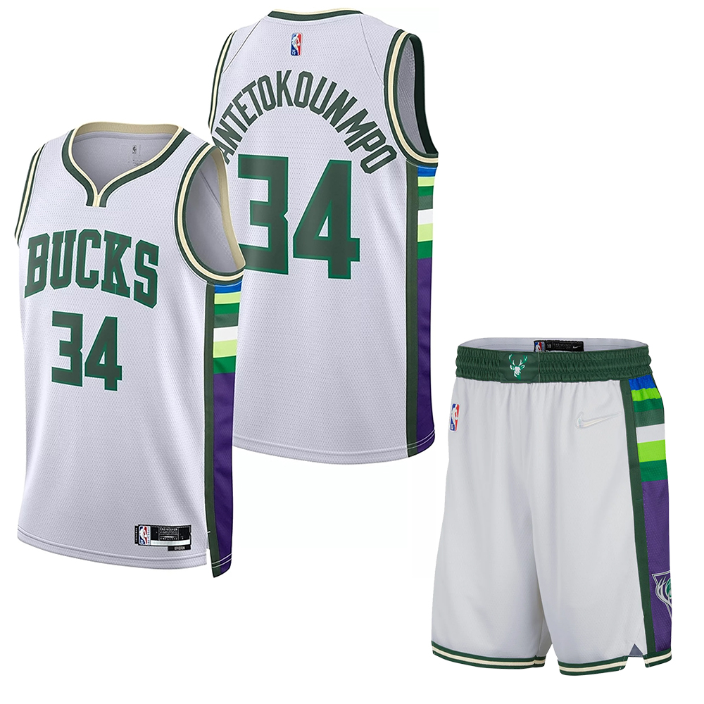 ست تاپ و شلوارک لباس بسکتبال میلواکی باکس سفید NBA Milwaukee Bucks Basketball Jerseys